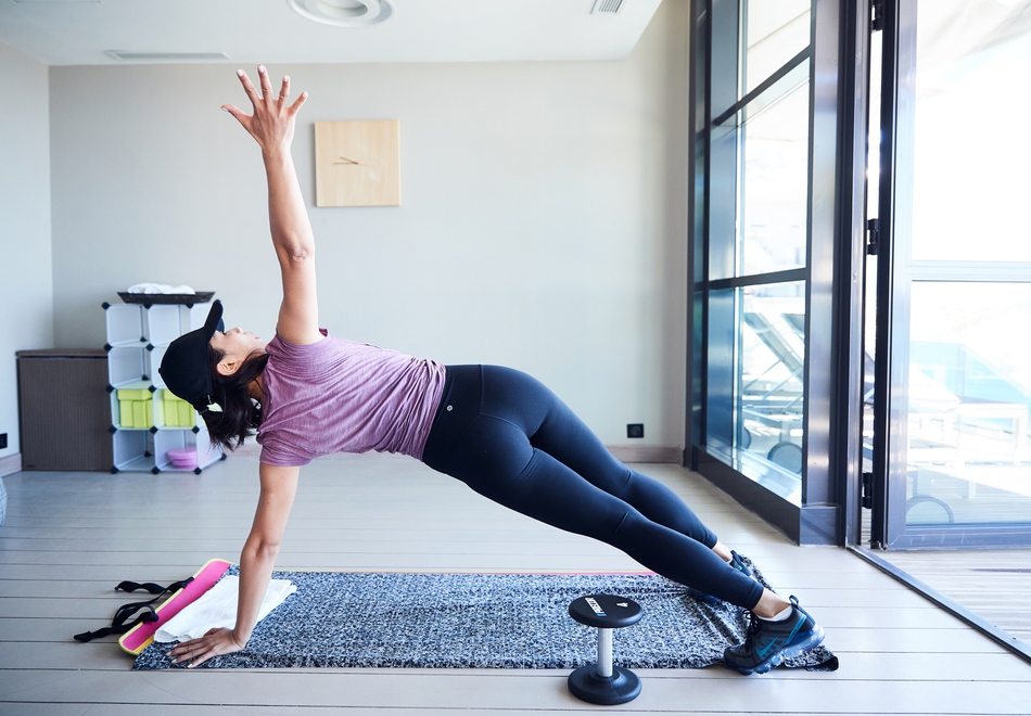 14/23换了一个房间,铺上瑜伽垫,已经锻炼了一个小时的涛姐停不下来。涛姐的日常:每天健身两小时。