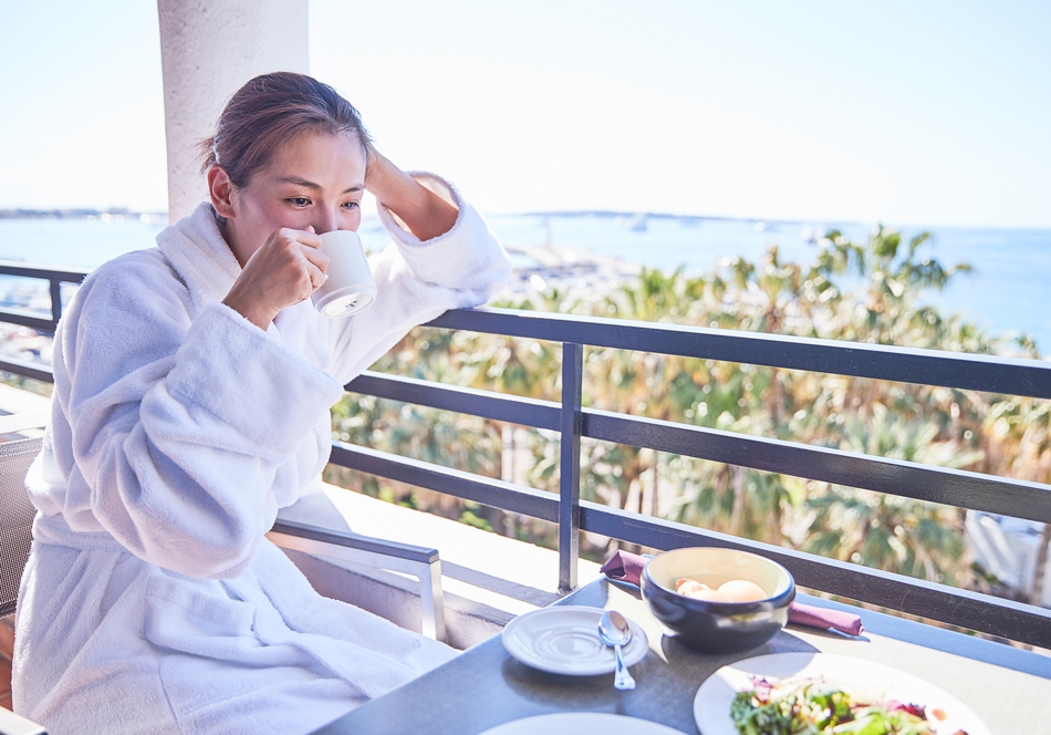 17/23露台外是海景,桌上是健康的美食,工作中也有度假般的好心情。