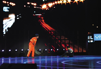 穿着保安服,笑称“是一个假的贵宾”的学员贾贵斌走上舞台带来了一出舞台剧。大专毕业的贾贵斌放弃了原有稳定的工作,只身上京追寻电影梦,一度被骗入传销组织,辗转逃出,差点死于街头天桥,在极度的窘迫下来到北京电影学院当上了一名保安。
