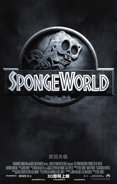 《侏罗纪世界》版:海绵宝宝变成了骷髅白骨,像原海报里的恐龙化石一样阴森恐怖。