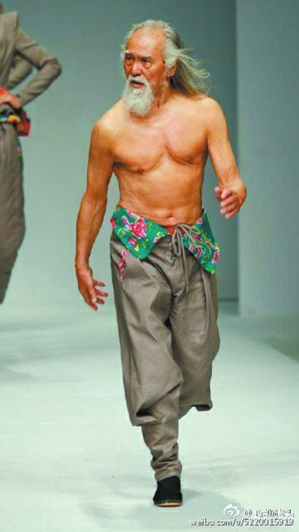 3月25日在北京举行的2015秋冬中国国际时装周上,赤裸上身登台表演的79岁的演员王德顺,一夜之间走红。他穿着特别设计的“棉裤”登台,照片被网友疯狂转载。3月26日他把照片放在微博上,并说“八旬老人重登T台走秀,实在是不好意思,献丑了”,获得超过3万的转发量,而粉丝也从1万涨到17万。