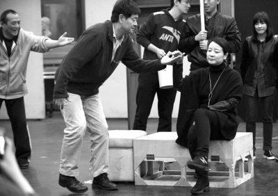 濮存昕、陈小艺排练现场。京华时报记者王俭摄