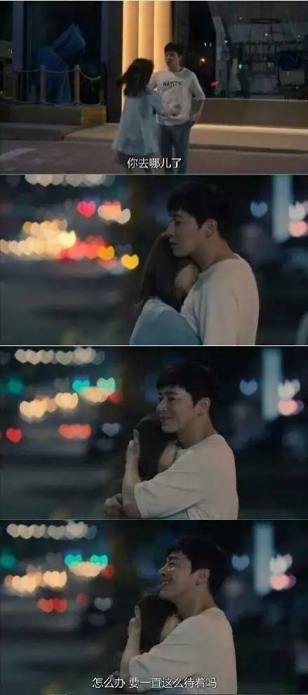 男女主两人隔着马路,一个红绿灯的时间都是那样漫长,绿灯亮起,女主小跑到男主怀中,男主先是惊喜然后又温柔的抱紧她
