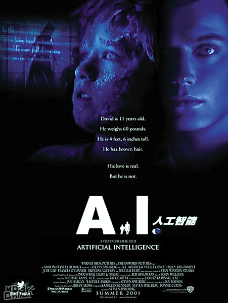 ■美国电影《人工智能》,讲述了21世纪中期一个小机器人为了寻找养母,为了缩短机器人和人类差距而奋斗的故事。