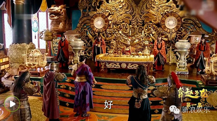 董卓这个宫殿简直豪华的不像样子啊,为了显示董卓财大气粗,穿的也是黄的,和背景都混为一色了好嘛....