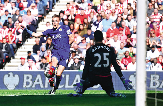 莱斯特又赢了,在前晚的英超比赛中,瓦尔迪的梅开二度,莱斯特在客场2∶0击败桑德兰。如今33轮战罢,莱斯特以72分排在积分榜榜首,领先第二名的热刺7分。过去5场比赛,莱斯特进6球失0球一路狂飙5连胜。在联赛仅剩5轮的情况下,“狐狸”不仅获得了下赛季的欧冠门票,还真的就要上演黑马夺冠奇迹了!