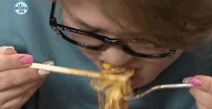 为了能够更加美味的同时吃掉两盘不同口味的意大利面,想破脑子,该如何分配时间面才不会冷掉?刚结束演艺活动,回到车上就开始吃泡面补充能量,整个脸差不多都塞进去了,连盒子都要吞下去的气势!
