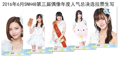 生写:SNH48成员限定写真照,至今已发行近十套。该产品为集换类型,每月限定主题,所有成员参与拍摄。每套5张,以随机抽选的形式贩售。