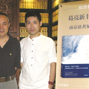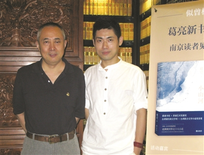 前晚,两届亚洲周刊华人十大小说奖得主,现居香港的南京籍作家葛亮携新作《小山河》做客南京凤凰书城,著名作家叶兆言为其站台助阵。在葛亮接受媒体采访时,提前到的叶兆言“躲”在一旁的书架前翻书,没有惊动采访。在与读者的互动中,他透露,祖父和父亲都反对他从文,曾让他当一名电工,“我想在那个年代,如果我是一个电工,一定比作家有用。”