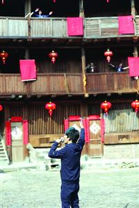 在被列入世界文化遗产的南靖土楼里,古老的长廊装饰着喜庆的红灯笼,家家户户贴起祝福的春联,客家人已经准备好迎接归家的游子和八方来客。