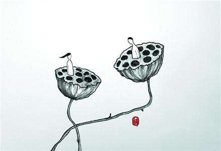 闫楠画作《夏天最后两朵莲蓬》