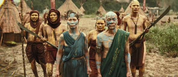 对于岛上食人族的设定,《金刚:骷髅岛》更是予以彻底推翻。在本片中,很难分辨这些人民是远古时代就诞生于岛上的原住民、抑或这数千年来某个时期迁移过来的大陆居民。