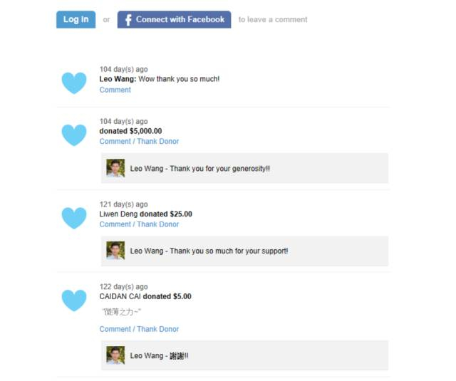 上面讲了,希望之城是非盈利性的研究和治疗中心,人们可以通过官网上捐助的通道进行捐赠。王力德还一一回复感谢那些捐赠者。(真是个good boy 啊)