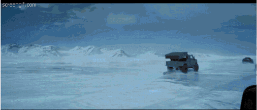 这一幕不乏精彩的雪上飙车,跑车、重型卡车、装甲机车、摩托雪橇一并参与竞赛厮杀,场景非常壮观。