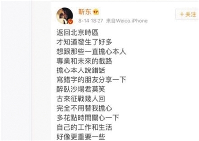 8月14日,靳东在微博上疑似回应近期被指角色表演雷同的质疑。