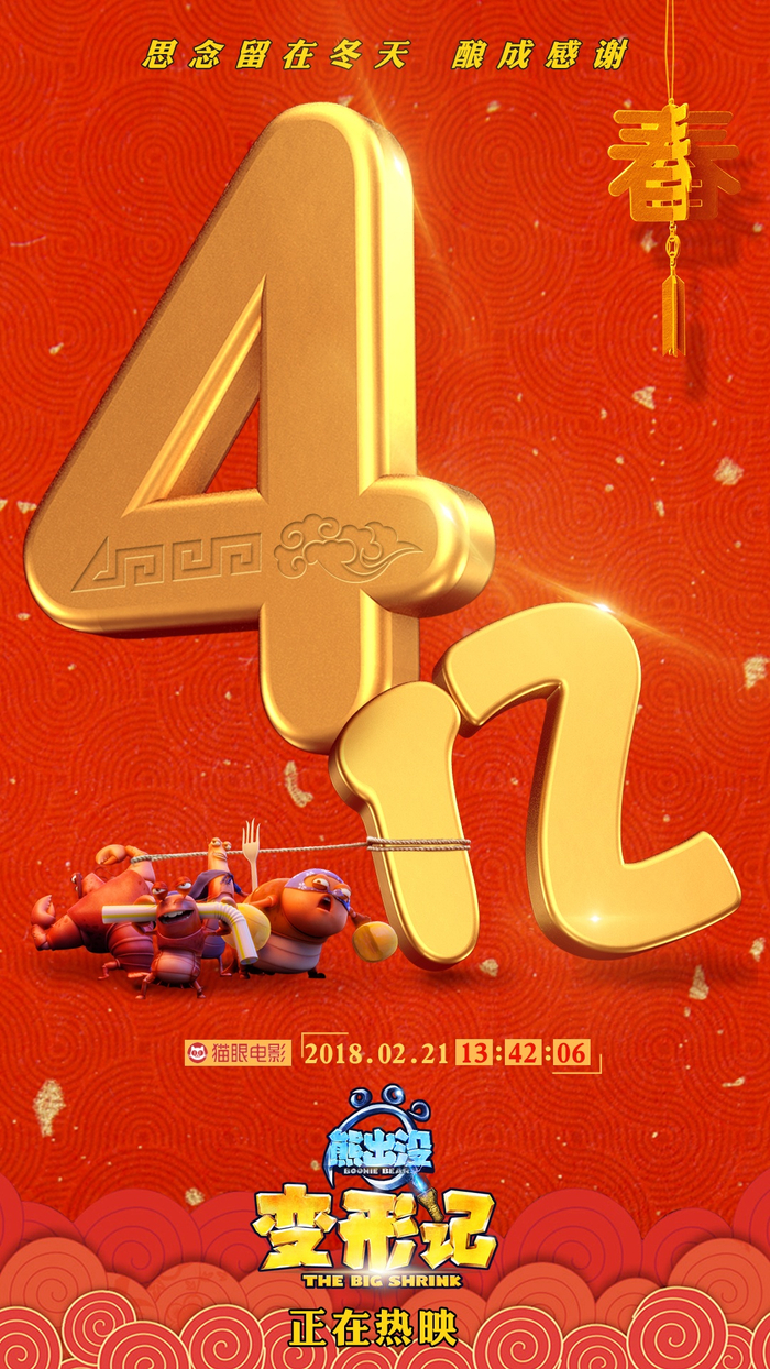 《熊出没·变形记》票房破4亿 发“赖账记”番外
