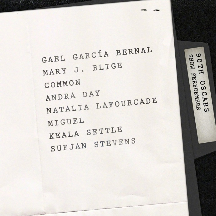1905电影网讯 第90届奥斯卡金像奖颁奖典礼表演阵容公布,5首最佳原创歌曲奖的候选歌曲演唱者将在颁奖典礼现场带来表演。