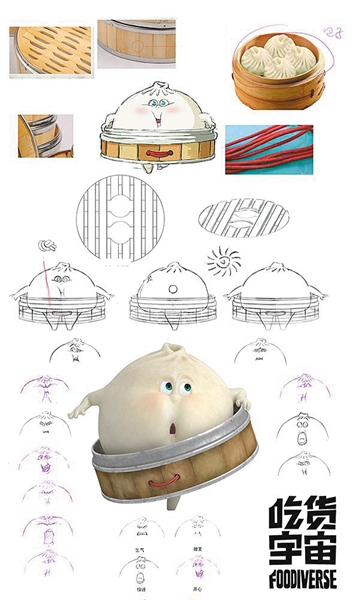 在设计《吃货宇宙》美食造型时,导演陈廖宇定了两个原则:一是要让观众识别出是什么美食,二是能给观众带来与众不同的趣味。在所有美食角色中,属饺子和包子的造型最花心思,这也是令导演陈廖宇最自信的两个角色。