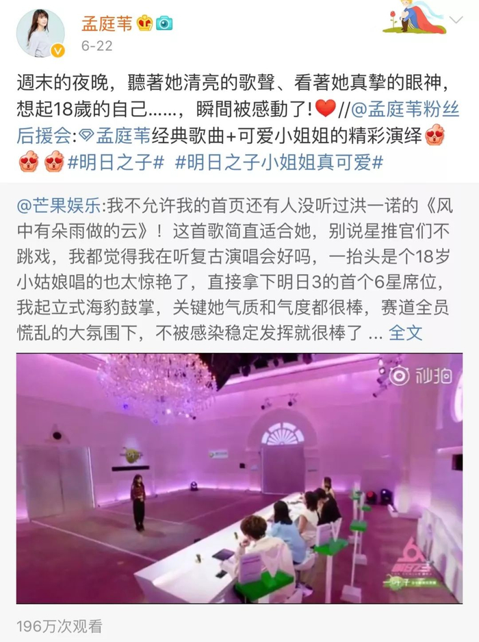 孟庭苇发微博称赞洪一诺