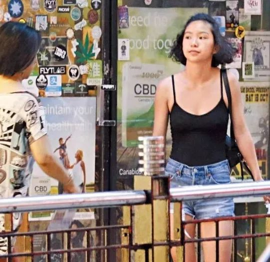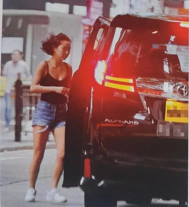 邢言爱由司机接送外出,一身黑色小背心与牛仔短裤配运动鞋,加上健康的小麦肤色,青春逼人。