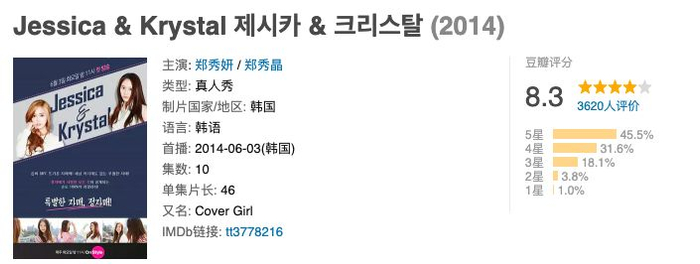 郑氏姐妹的专属综艺《Jessica&Krystal》很快就要出第二季了,第一季豆瓣评分高达8.3。