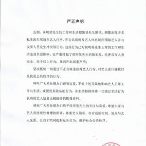 侯明昊工作室发布严正声明 呼吁抵制私生理智追星