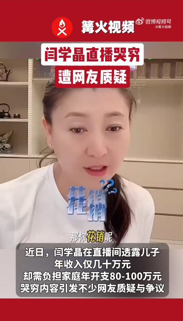 直播里,闫学晶掰着手指算了一笔“明星家庭账”:32岁的儿子林傲霏作为演员,一部戏收入二三十万;儿媳妇是音乐剧演员,年收入甚至不到十万。两人年总收入撑破天不到四十万,但在闫学晶看来,这个在北京维持一个家“运转”的底线,是“百八十万”。面对网友“几十万已经很高了”的留言,她眉头紧锁,一句“你不知道北京的消费啊”的反驳,瞬间让屏幕内外充满了隔阂感。