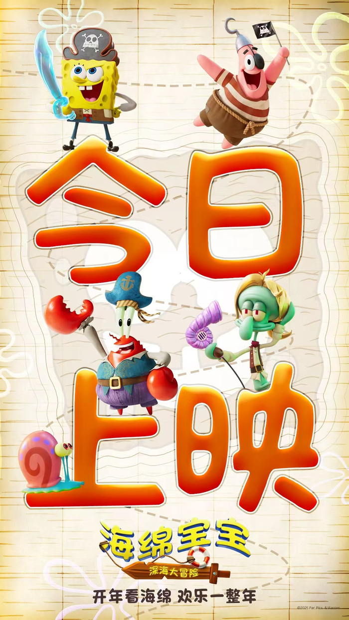 今日同步发布了“全新旅程”海报,海报上海绵宝宝戴着海盗眼罩,开心大笑露出标志性的两颗大门牙,兴奋与期待的神态极具感染力将欢乐氛围拉满,仿佛在邀请观众一同踏入这场充满惊喜的冒险之旅!影片延续了动画系列一贯的奇思妙想、幽默脑洞与暖心内核,从海报的视觉巧思便能窥见这场冒险的欢乐基调,无论是小朋友还是怀揣童年回忆的成年观众,都能和海绵宝宝、派大星一起体验精彩的海底冒险,在大笑中忘却烦恼,收获纯粹的快乐。作为元旦档期中唯一一部合家欢动画电影,它无疑是亲子观影、朋友欢聚的绝佳选择,这个假期带上家人朋友走进影院,解锁爆笑又治愈的深海奇遇,用笑声迎接美好的新年。