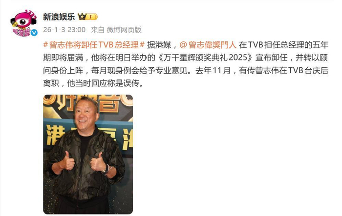 TVB一年一度的《万千星辉颁奖典礼》向来是星光与话题的焦点,而明年的颁奖礼,恐怕要上演一场比任何剧集都更具看点的“压轴大戏”。据港媒爆料,在2026年1月4日于澳门举行的《万千星辉颁奖典礼2025》上,TVB将正式宣布总经理曾志伟卸任,并为其特设致敬环节,颁发重量级奖项。消息一出,瞬间让去年他那句“误传”的回应,显得意味深长。