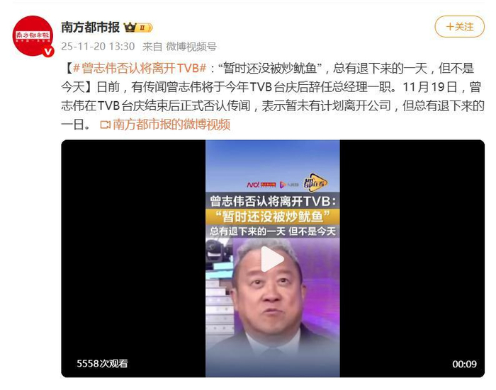 曾志伟被曝将卸任TVB总经理,此前曾公开回应离职传闻为“误传”