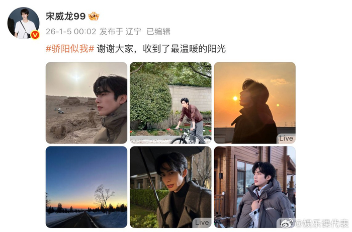 宋威龙发文庆祝骄阳似我热度破3万