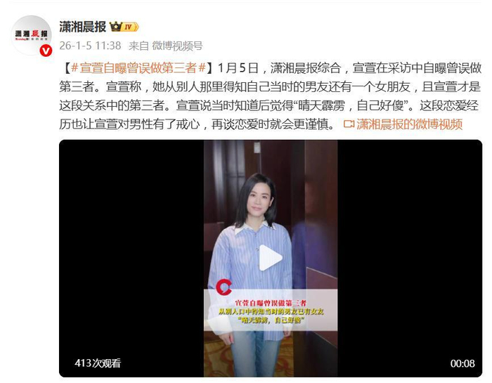 宣萱自曝曾误做第三者,知道后觉得“晴天霹雳,自己好傻”