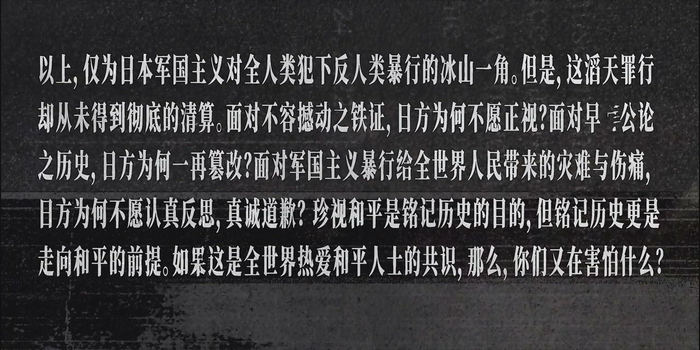 在算看来,创作《反人类暴行》,首要的便是尊重史实。尤其是在提取史料、将史料融入故事的环节,要保持冷静、克制。万不可浅尝辄止、见好就收,不同角度的相关资料相互佐证,构成逻辑闭环,剧作的基石才会稳固。《反人类暴行》的整个创作、拍摄过程中,也进行了大量的取舍工作,据算介绍,731罪证陈列馆里的资料太多了,在讲故事的同时,这部作品的目标就是,不仅要呈现731部队,更要揭露其反人类罪行背后的逻辑链条,包括它的硬件规模、组织结构、医学支撑及其军事目的,全盘呈现给观众。