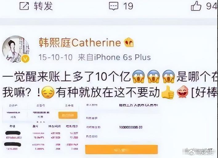 韩熙庭很快就沦陷到这个温柔乡,甚至直接在社交媒体晒出银行账户截图。