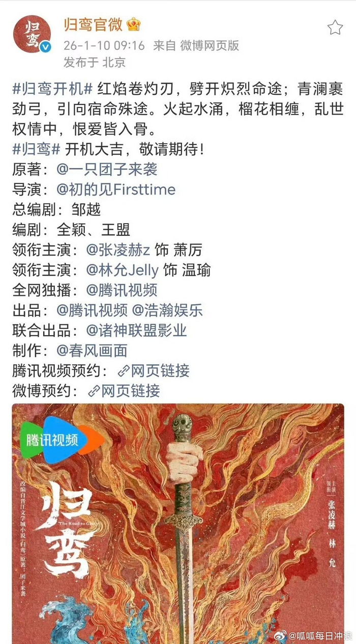 张凌赫官宣出演归鸾,担任一番大男主