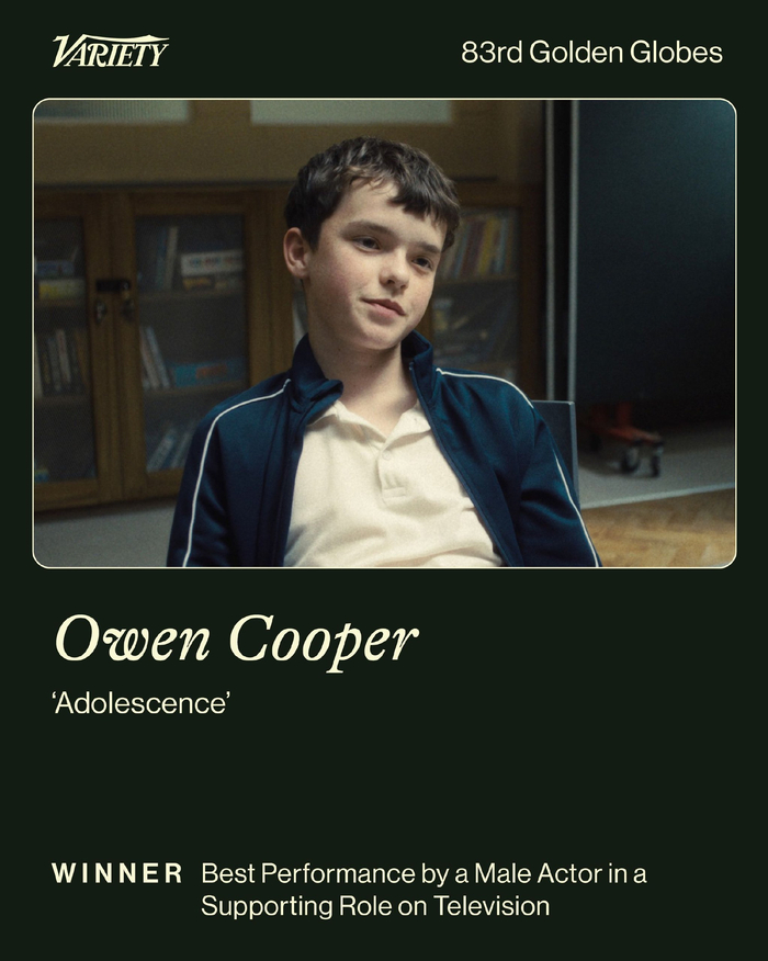 16岁欧文库珀凭《混沌少年时》包揽三大奖创纪录 Houson猴姆 01.1209:44 关注 没有悬念!恭喜欧文库珀凭借《混沌少年时》获得第83届#金球奖#剧集最佳男配角!年仅16岁的他包揽了艾美奖、评论家选择奖和金球奖三大奖最佳剧集男配角,成为史上最年轻包揽三大奖剧集类男配角的演员!