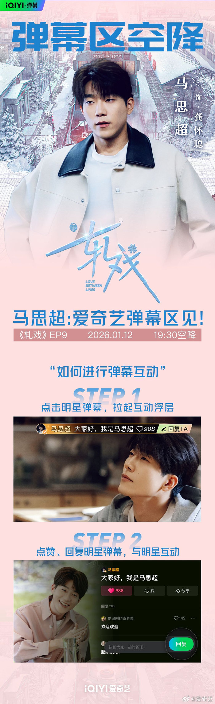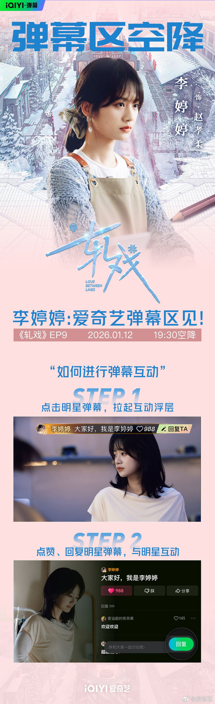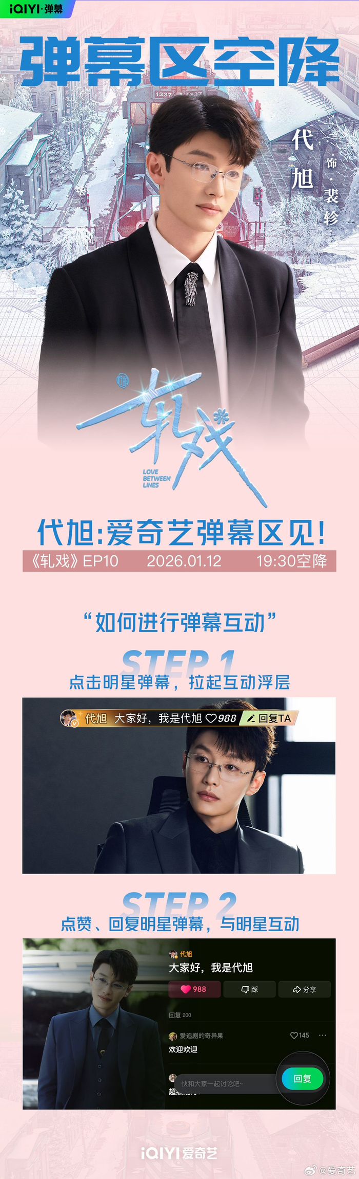 都市追梦甜愈剧#电视剧轧戏# 专属追剧搭子上线啦!今天19:30裴轸@代旭 即将空降EP10弹幕区,龚怀聪@马思超Kido 赵孝柔@无敌大王李婷婷 即将空降EP9弹幕区,和大家畅聊戏里戏外精彩瞬间!每日19:30锁定爱奇艺恋恋剧场,一起甜蜜入戏勇敢追梦!#爱奇艺弹幕#
