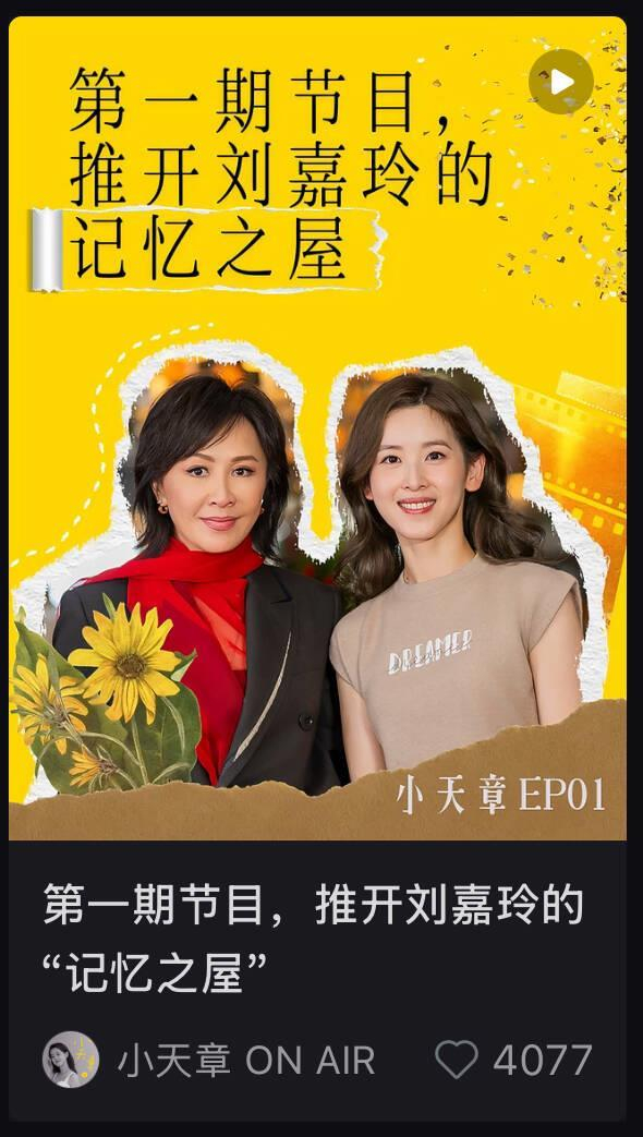 随后不久,《小天章》公布了第一期节目的预告片《推开刘嘉玲的“记忆之屋”》,在预告片中章泽天在刘嘉玲家中录制了第一期播客,据《小天章》介绍,“这间公寓见证了刘嘉玲的成长,也收藏了与张国荣、邓永锵、张叔平等好友的独家记忆。也是在这里,章泽天与刘嘉玲从苏州的童年记忆畅谈到香港影坛的快意江湖。聊聊刘嘉玲60载传奇人生,如何将人生的风雨与暖寒,活成眼底的云淡风轻。更有从未公开的家庭细节:原来那个‘社恐’又追求极致的梁先生,竟然有写‘道歉卡’的另一面?”