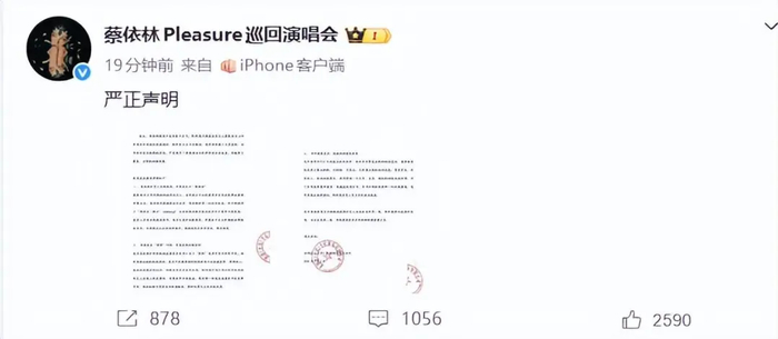 对于举报,蔡依林方发布严正声明,针对近期网络上关于蔡依林演唱会内容的断章取义以及不实解读进行维权。