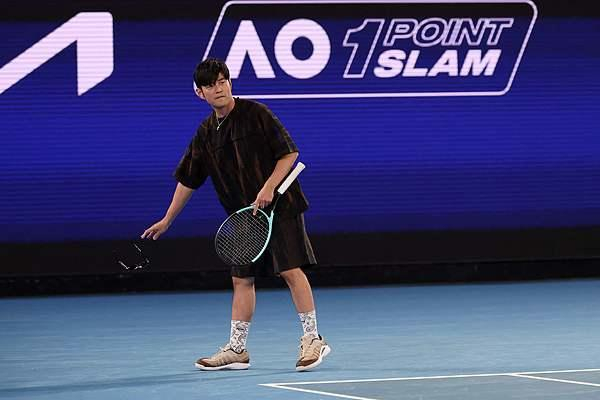 歌手周杰伦踏上澳网赛场参加网球比赛,这并非拍摄电影或MV,而是“一球制胜”比赛成就的奇特场景。