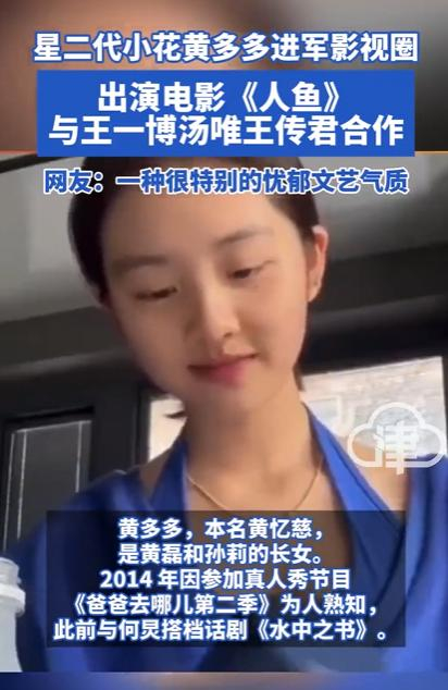 5月11日,由程耳执导的文艺片《人鱼》更新演员表。黄磊女儿黄忆慈(多多)将搭档王一博、汤唯、王传君出演该片。网友评价黄多多:一种很特别的忧郁文艺气质。