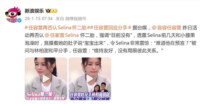 同一场合,任容萱还顺手澄清了另一桩家庭乌龙。针对姐姐Selina(任家萱)怀二胎的传闻,她明确否认“目前没有”。她解释,此前Selina因衣着宽松被猜测怀孕,纯属“视觉误差”。任容萱还透露了一个有趣的家庭插曲:前几天Selina和儿子小腰果一起泡澡时,小腰果突然摸着她的肚子说“宝宝出来”,把Selina本人都吓了一跳,直呼“难道他在预言?”不过,任容萱也表示,家人虽然都希望增添新成员,但Selina现阶段心态平和,“不强求”。