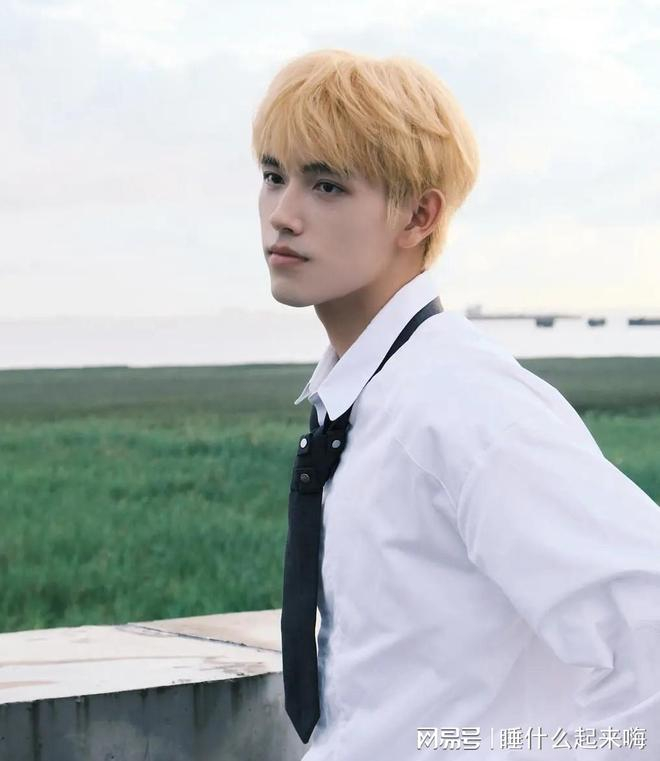 22岁的年纪凭借《点燃我,温暖你》成功出圈,染一头金发,穿一件白衬衫,眉目深情还略带忧郁气息的少年郎,帅得仿佛漫画里走出来。