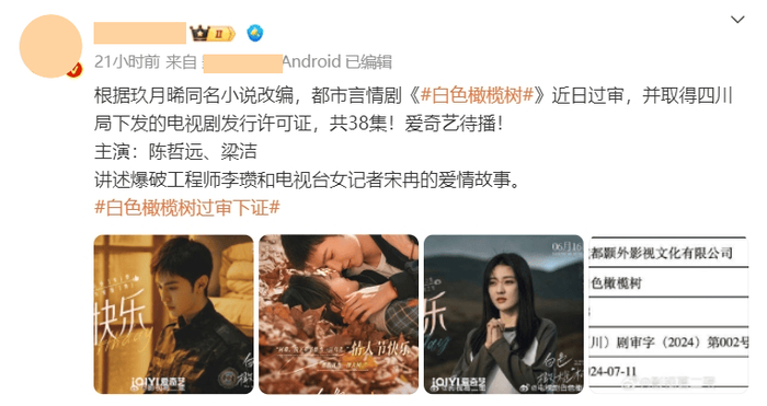 38集都市大剧《白色橄榄树》即将来袭,目前剧集已经过审并取得了发行许可证,不日就将与大家见面了。
