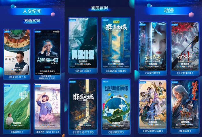 优酷多部作品为传统文化注入青春力量和时代意义。立足“新国风”战略,动漫还将推出《光阴之外》《山海经密码》等新作。《非遗之城-天工季》《小鹊杏》《文化中国》等人文纪实作品将传统文化与现代表达相结合,丰富内容内涵与社会价值。