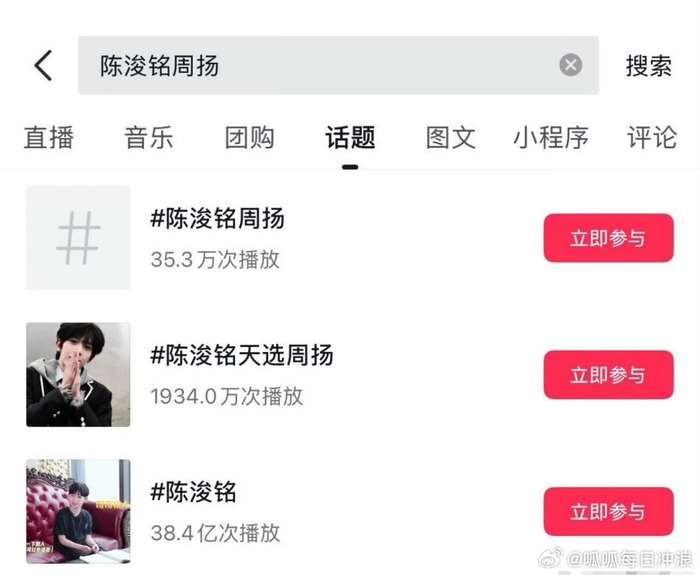 陈浚铭陈奕恒天选周扬热度对比