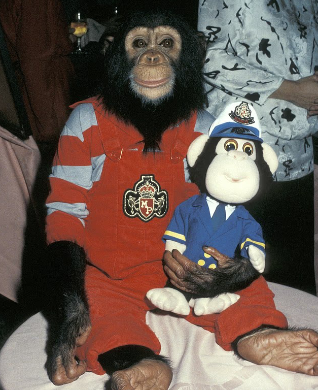 1983 年,杰克逊收养了这只黑猩猩,当时的它只有八个月大。之后,泡泡经常被看到穿着人类的衣服,与杰克逊一起参加公共活动,还出现在他的一些音乐视频中,甚至陪着他环游世界。