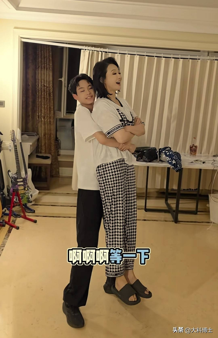 主持人曹颖与14岁儿子亲密互动,被儿子背后熊抱,王梓涵片源不断