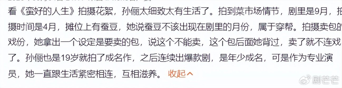 还有花絮里面,拍摄菜市场买菜桥段,一眼能看出来哪些菜不属于这个时节,会抓细节,买菜总是越买越多的,不是像走红毯一样,拎着个菜篮子,但里面没东西。