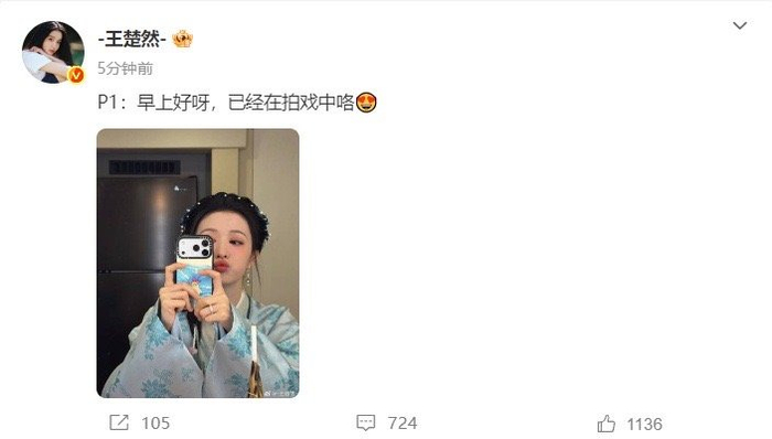 王楚然晒27岁生日自拍,清晨开工拍戏 娱小圈 优质娱乐领域创作者 01.2110:34 关注 #王楚然27岁的第一张自拍# #王楚然27岁生日发文##王楚然早上好呀已经在拍戏中#王楚然27岁的第一张自拍来啦!嘟嘴对镜拍好可爱呀,是一大早就在努力工作的@-王楚然- 呀~生日快乐,工作顺利